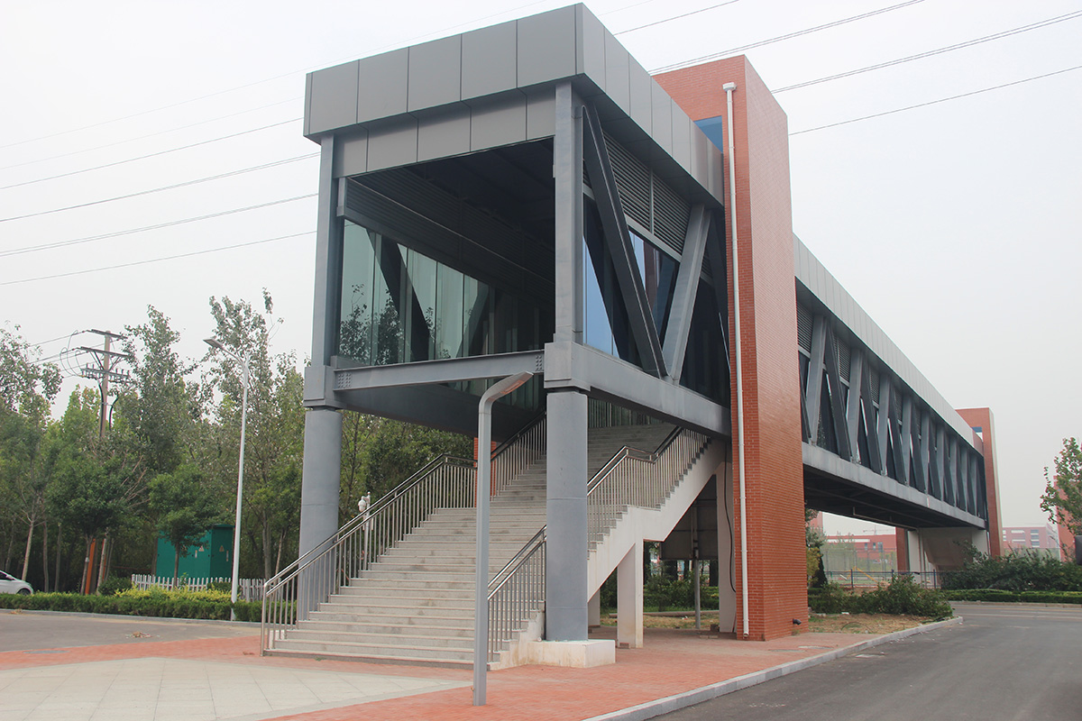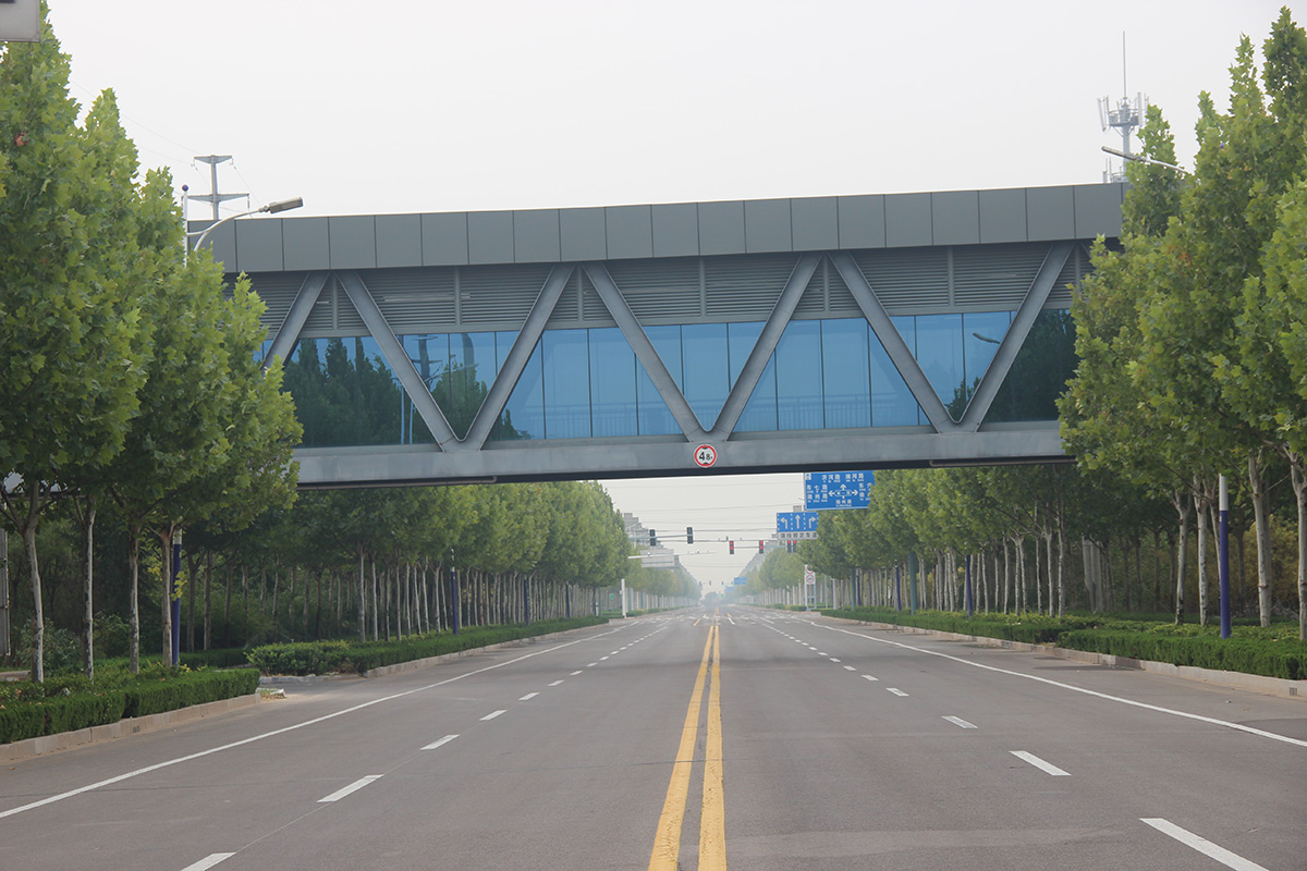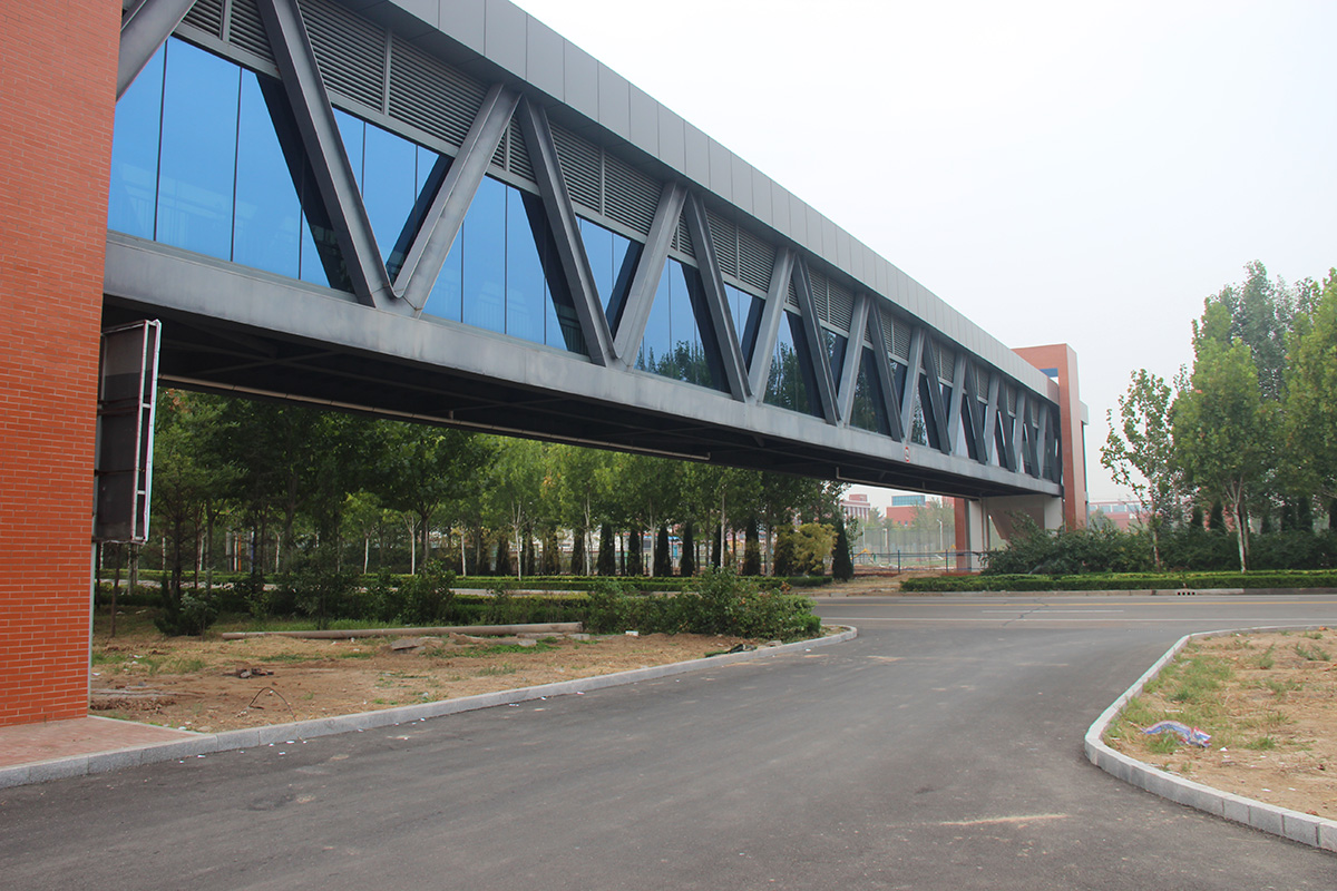 本項(xiàng)目為東營(yíng)市中等專業(yè)學(xué)校過街天橋,位于福州路,東面為東營(yíng)市中等專業(yè)學(xué)校校區(qū),西面為東營(yíng)市技師學(xué)院東校區(qū)。擬建人行天橋跨度64m,橋?qū)?5.7m,采用鋼桁架結(jié)構(gòu)。天橋跨過福州路,兩端各設(shè)樓梯通道以及造型。橋梁中線與下方道路中線交點(diǎn)處道路***高程為3.85m(黃海高程),此點(diǎn)相對(duì)高程為-5.65m?!?.000為主墩墩頂處主桁架下弦桿頂面高程。